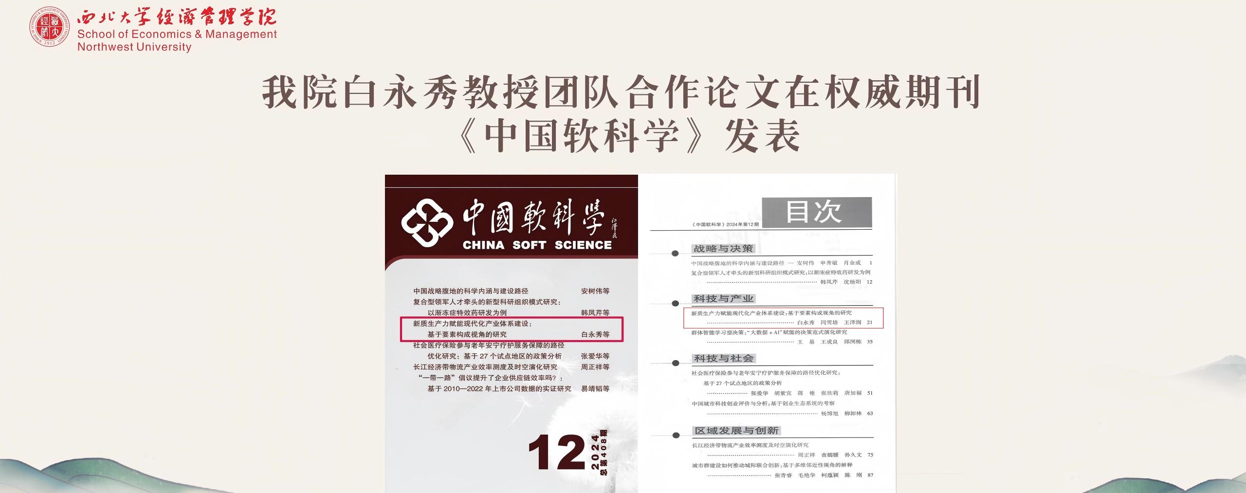 我院白永秀教授团队合作论文在权威期刊《中国软科学》发表