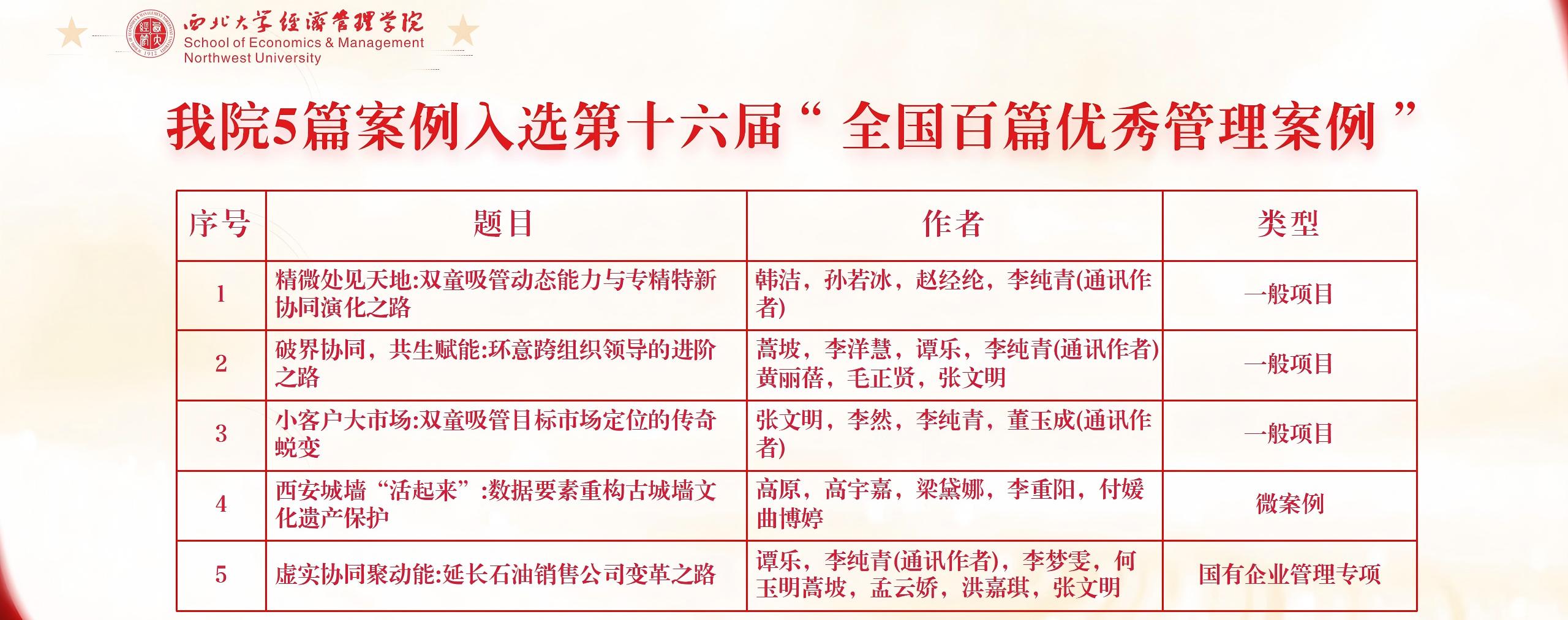 喜报|我院5篇案例入选第十六届“全国百篇优秀管理案例”