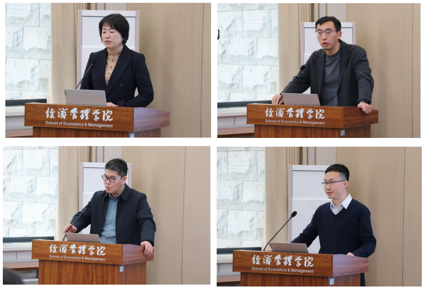 主旨发言后,举行了主题发言环节。由西北大学经济管理学院副教授吴航主持。西北大学经济管理学院副院长岳利萍教授、西北大学经济管理学院副院长吴丰华教授、西北大学经济管理学院世界经济与贸易系主任王颂吉博士、永秀智库总裁鲁能先后汇报了《陕西生态功能县推进以县城为载体的新型城镇化的困境与突破路径》《区域协作推进因地制宜发展新质生产力的理论逻辑、现实困境和破解路径》《进一步推动西部大开发形成新格局的动力机制》《优化陕西经济布局促进区域协调发展》。会议最后,与会专家还围绕主题进行了自由交流。