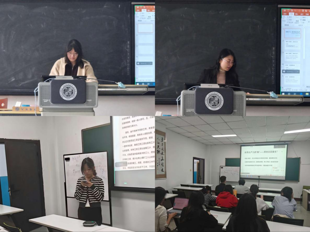 本次“基地学术课堂”活动的第一单元为文献研习,所学文献为《新质生产力及其培育和发展》,来自《经济学动态》2024年第1期。2023级经济学基地班本科生谢宇婷主讲,围绕新质生产力展开系统讲述,指出新质生产力是生产力的新质态,是马克思生产力理论的创新和生产力由量变到质变的结果。发展新质生产力的关键是推动科创与产业创新深度融合,培育战略性新兴产业与未来产业。同时需适配生产关系,集聚高端创新人才,凸显科技企业家的引领作用,打造科技与产业融合的创新高地,完善容错机制与激励体制,以教育为基础培育适配新质生产力的人才队伍。2024级经济学基地班本科生李斯琦担任评论人,围绕新质生产力核心维度展开辩证分析。首先探讨其“新”的本质,主张从质变入手质变区分技术革命,指出其忽略劳动组织新形态和未关注动能转换的分配问题;其次肯定其强调科技与产业融合破解成果转化难题的观点,也指出其未探讨产业选择逻辑并高估了后发地区弯道超车条件;最后认可其对科技企业家的定位并肯定其容错机制等理念。